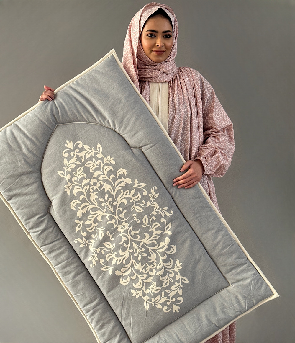 طقم صلاة مغلف - وردي ورمادي