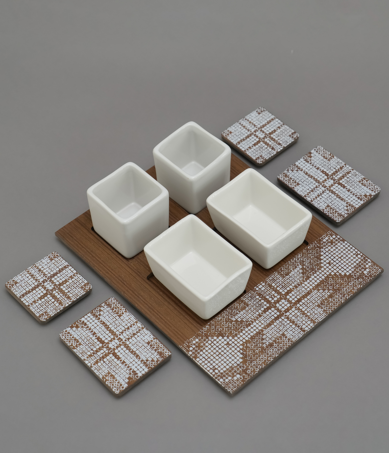 عدد 4 قواعد سيراميك مع اغطية خشب