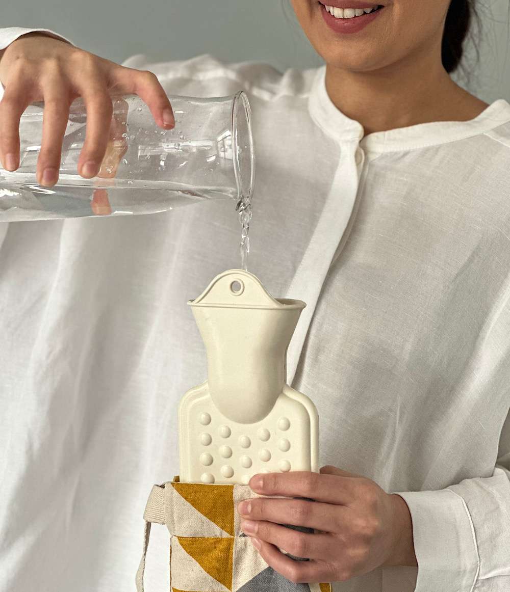 Requires less than a kettle of water to fill up (less than 1 litre), cleverly designed bumps on the surface of the bottle trap air within the fabric making it stay warmer for longer.