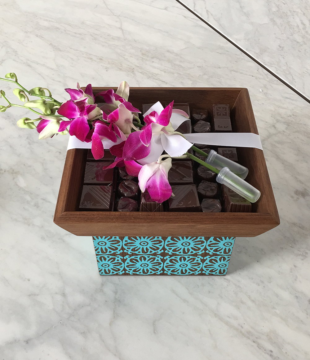 EMPTY BASE , THE LID OF THE BOX COMES WITH CHOCOLATE & FRESH FLOWERS